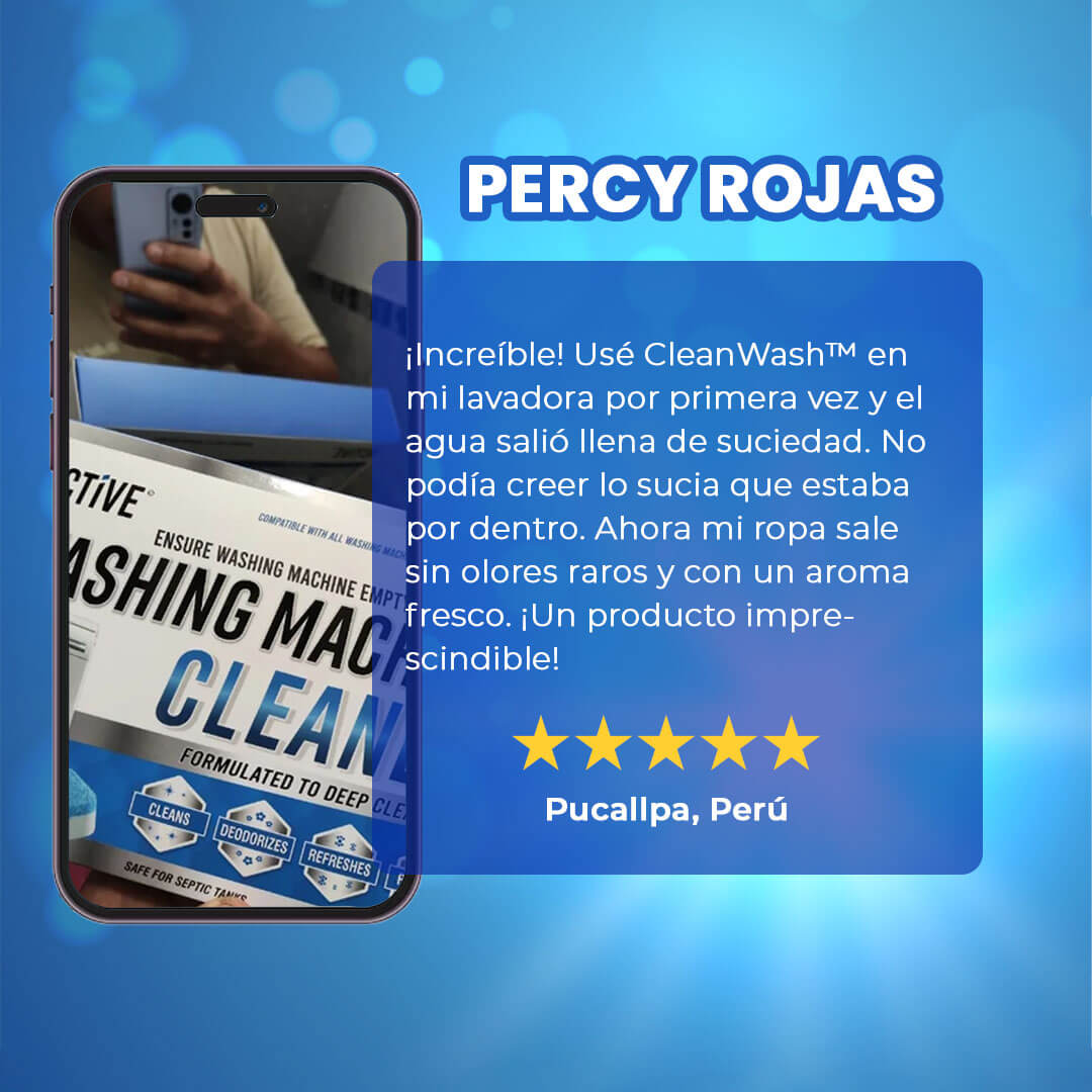 Probé muchas soluciones antes, pero ninguna funcionó como esta. CleanWash eliminó los residuos y malos olores de mi lavadora en un solo uso. Además, deja un aroma fresco en la ropa. ¡10/10!