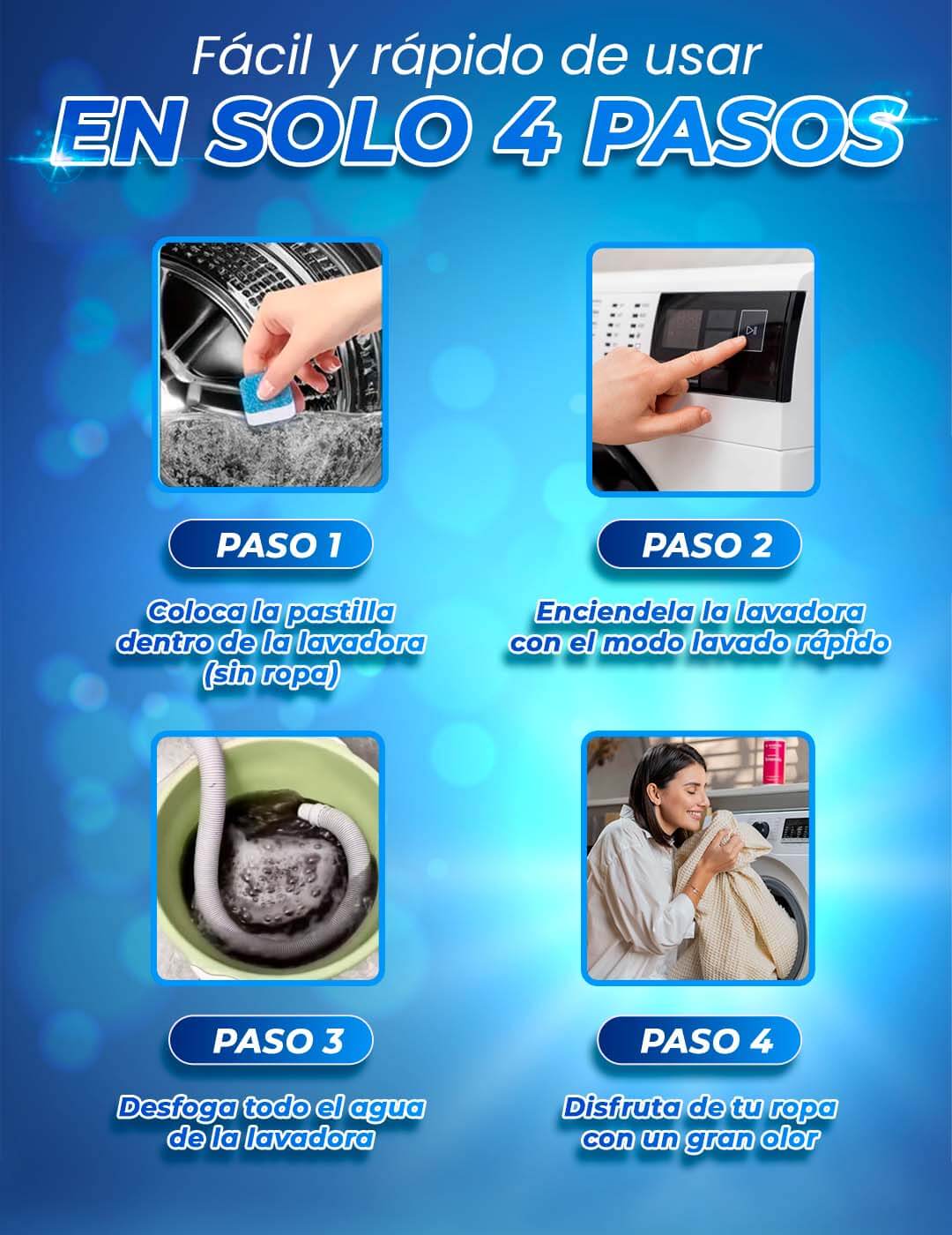 Muy fácil de usar y los resultados son sorprendentes. Solo coloqué la pastilla y la lavadora hizo el resto. El tambor quedó limpio y fresco, y ahora sé que mi ropa también estará más limpia. ¡Lo recomiendo totalmente!
