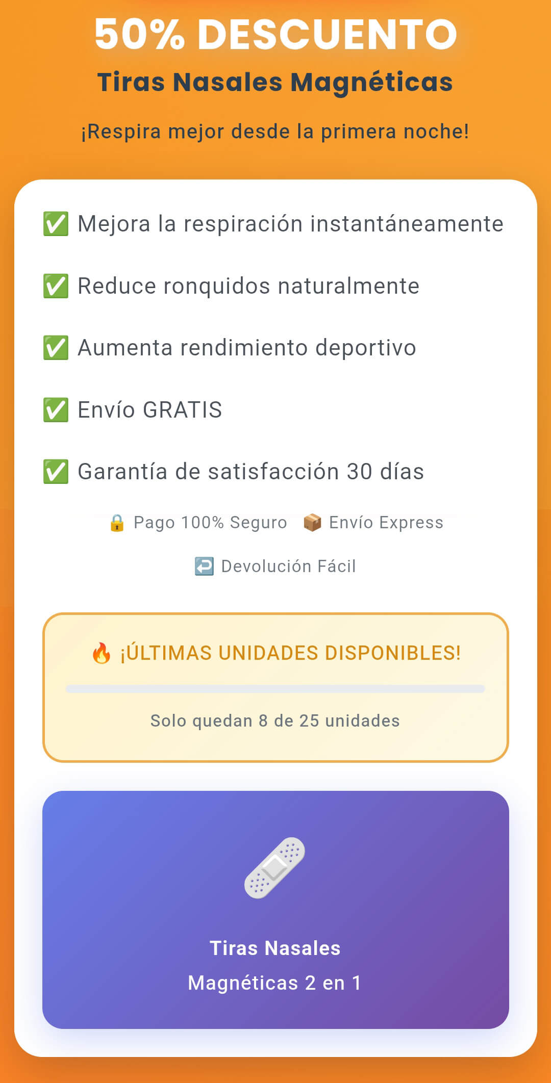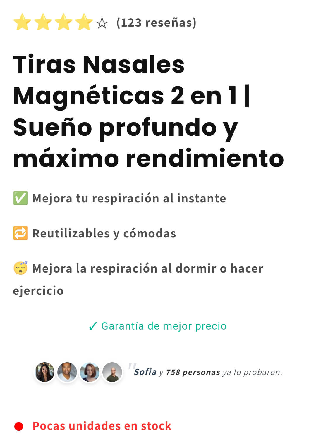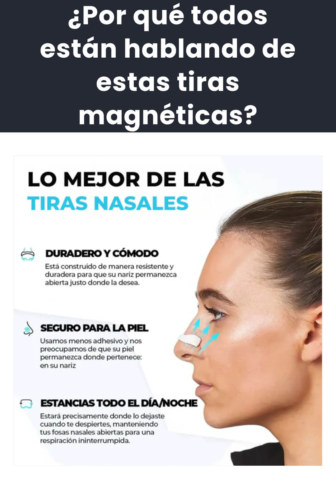 "Sufría de congestión nasal crónica. Estas tiras magnéticas son un cambio total. Fáciles de usar y súper efectivas."
